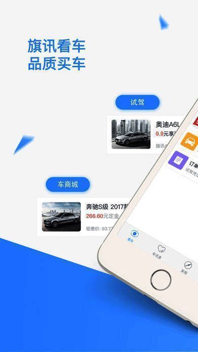 《旗讯看车》是一款手机看车、试车软件。软件内有超全面的汽车资讯,用户看中那辆车还能够提前试驾,对于买车犹豫的童鞋来说很好、很强大。购车还有贷款服务提供。快来下载吧。