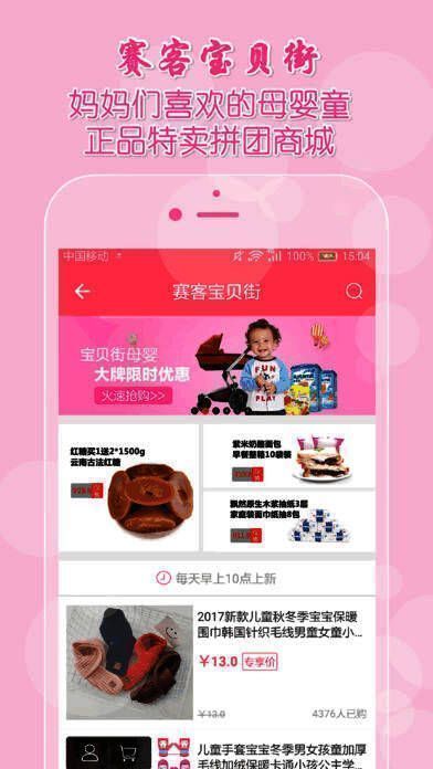 5、【宝贝街】妈妈们喜欢的母婴正品特卖拼团商城,百万宝妈最爱,购物赚钱两不误!每天1折起限时特卖,童装童鞋、母婴用品、居家百货、女装鞋包等天天上新,正品保证,全场包邮!!!