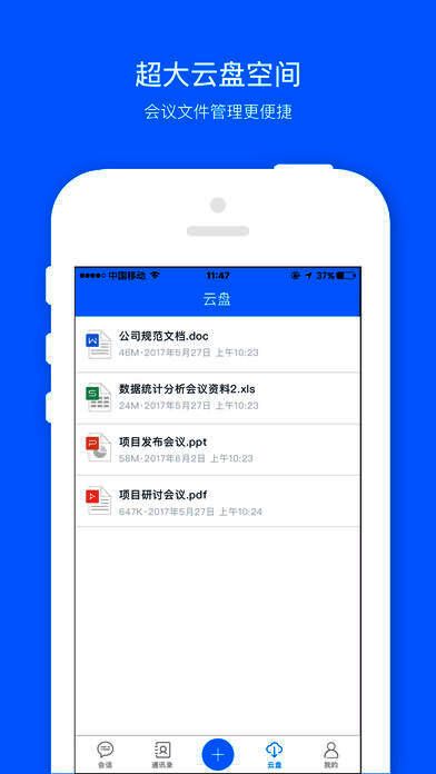 云盘功能:超大云盘空间,会议文件管理更便捷