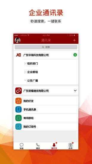 2、方便的办公通讯录:全员实名的企业通讯录,无需逐一加好友、存号码,找人只需轻轻一点;
