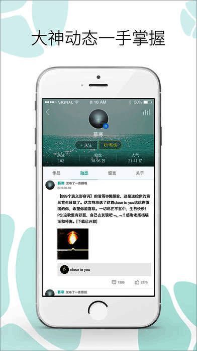 2、与音乐人交流互动,上万位知名音乐人入驻,小曲儿、回音哥、河图、慕寒;