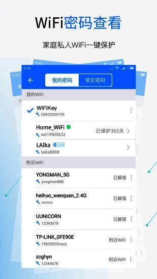 WiFi密码查询:云端包含上亿个WiFi热点信息,一键帮你破解WiFi热点密码。快速扫描周围可用WiFi,极速的wifi连接钥匙。稳定快捷连接,帮你解决只能看不能连的尴尬。