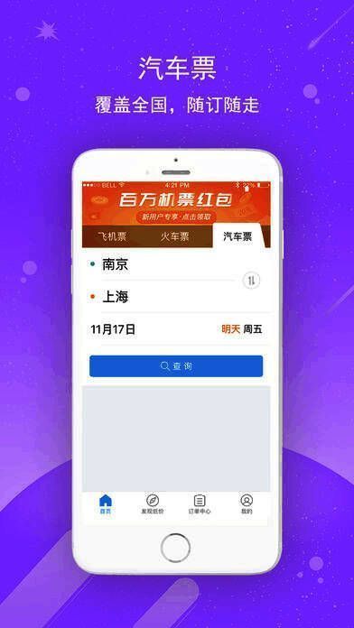 5、【汽车票】支持全国联网汽车票订票,网上订票车站自取;