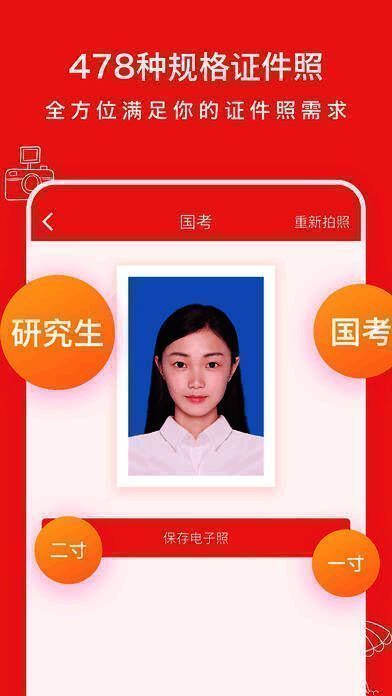 用户选择拍摄的类型和尺寸,迅速拍摄照片即可