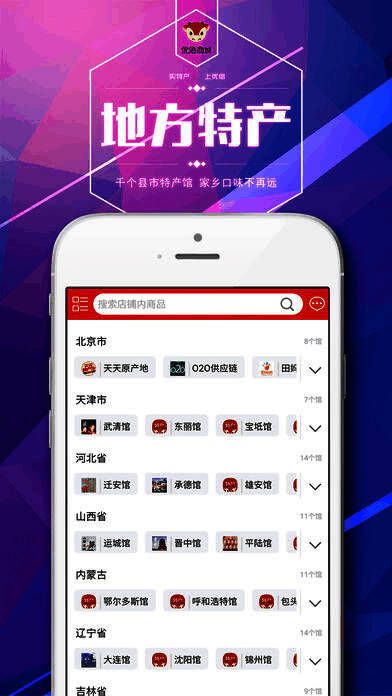4、地方特产:千个县市特产馆,家乡口味不再远;