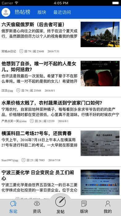 东方论坛app是东方热线为打造顶尖都市网络媒体,集发帖、回帖、编辑、拍照、传图、分享、附近、好友等功能于一体的客户端产品。全新的UI设计,流畅的操作体验,方便广大网友轻松点击阅遍甬城事,民生、八卦、娱乐、各种分类信息,随时随地的体验东论生活。