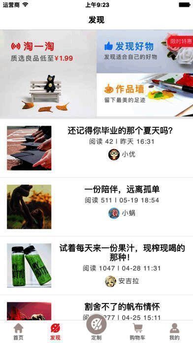 《乐乐定制》是一个专门为用户做定制的应用,平台商户一应俱全,是工匠设计师们可以选择的合作平台,功能简单强大,一键下单,让你亲自体验创作的美妙,更是一个在节日上派上重大作用的应用,想要表达自己的心意何不尝试这款应用呢。