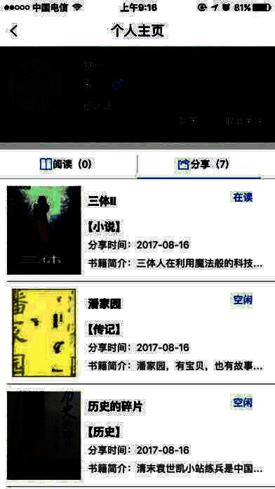 3、通过个人图书快乐分享,实现社会资源共享、广交同城书友、交流心得体会;