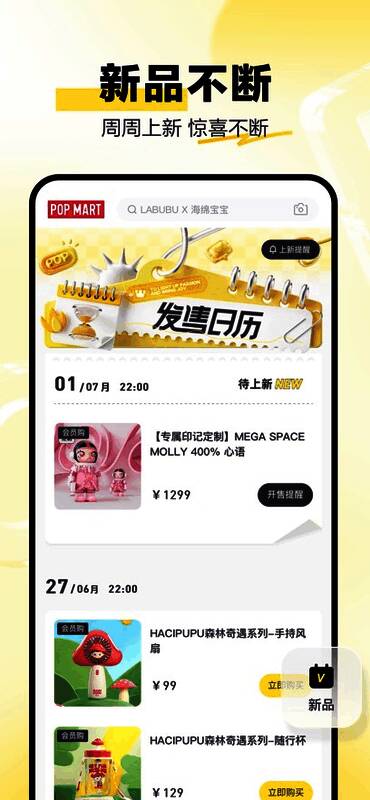 POP MART泡泡玛特是一款专为潮流玩具爱好者打造的综合性服务平台。作为国内领先的潮流文化品牌,POP MART致力于将线下盲盒购物的真实体验完整还原至线上平台,让用户通过手机也能享受与实体店相同的乐趣与惊喜。无论是在线抽取盲盒、购买限量款商品,还是参与丰富的互动活动,POP MART都能满足玩家对潮流文化的热爱与追求。