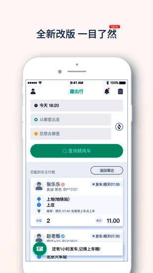 最专业的顺风车平台《趣出行》,让你的每一次出行都有着不同的乐趣,乘客可以以超低价格达成顺丰车,车主也可以在休闲之余赚一些零钱,感兴趣的话,就来下载吧!