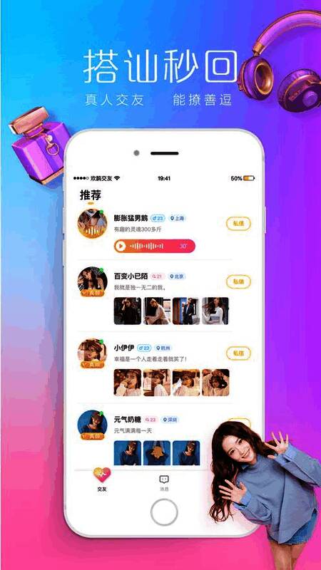 2、强大的智能算法,秒推陌生人谁可以在几秒钟内最了解你,聊天和分享,随时随地;