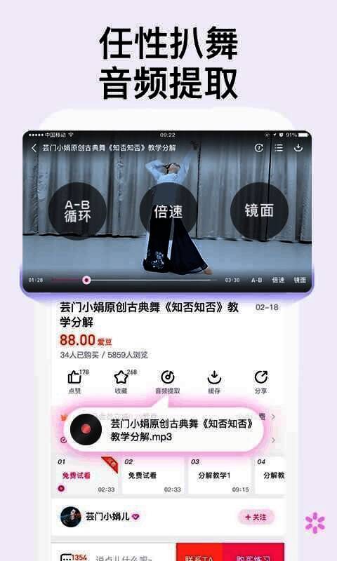 中舞网-舞蹈教学视频学跳舞可以帮助大家从零基础到专业舞者,任性学舞扒舞,就连手机本地视频也能镜像慢放循环播放、音乐提取!让你成为舞蹈之王!
