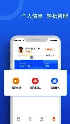 6、点击我的,自己的车辆与承运人、钱包都管理在这里。