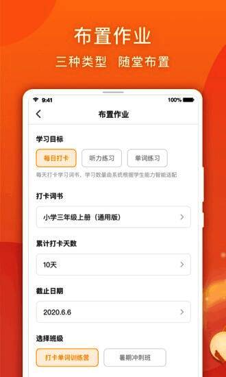 念念有词教师版专门为小学英语老师设计的辅助教学软件;通过紧随课堂、灵活教学、分析学情三大方面辅助老师从各方面了解学生的学习情况;紧随课堂主要是同步教材、作业跟着课堂进度走,让教学更加高效,及时巩固课堂学习;针对不同的学生的学习情况,针对性的安排作业,单词量少的同学布置每天打卡背单词的作业,单词量较好的同学就只用布置课后习题巩固单词,对听力差的学生布置听力练习作业,针对性的让孩子增强薄弱的一面;提供每天学习单词情况了解学习情况,通过作业知道孩子学习的质量。