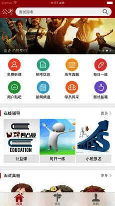 公考中国APP震撼来袭!针对国家公务员考试、各省公务员考试、各类企事业单位招考等面试培训进行专业辅导,主要涵盖结构化面试和无领导面试等。我们秉承最优质的教学资源,最给力的师资团队,最至臻的服务理念,让考生从零基础到成公上岸一站到底,全网最低资费,最全面的教学模式,让你在快乐中成长,在奋进中收获,亲们,来吧,让我们一起扬帆起航!