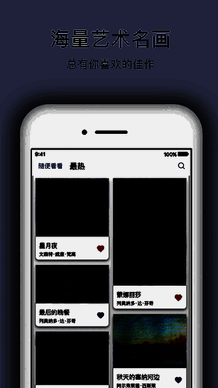 世界名画集app是一款收录全球各种经典著名绘画作品的软件。相信很多用户在读书的时候会知道世界上有非常多著名的绘画家。但是对于他们的各种绘画作品可能都没有见过。现在这个平台将这些驰名中外的著名画家的相关作品全部进行电子档收集。并且还会对他们这幅作品当时产生的背景,含义以及背后的故事全部都进行详细的解析。