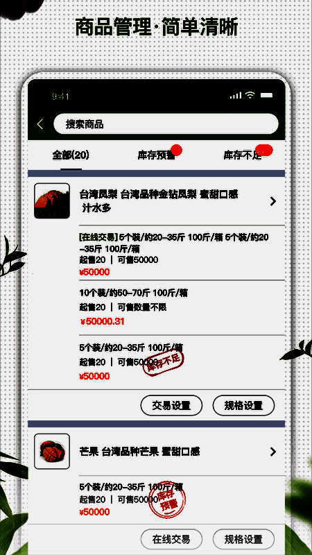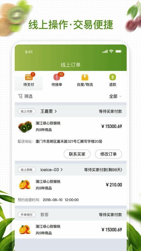 农联在线app是农联产融(厦门)科技有限公司旗下一款专注果蔬+互联网的行业专业平台,它以赋能传统水果批发市场为核心,为商家用户提供了一个白手起家开网店的平台,且经营成本低,收入高,让你的店铺经营和收入更加稳定。同时,软件通过产业资源和互联网平台,联通果蔬产业各环节,提高供应链效率,优化供应模式,支持商家申请开通网络店铺,自由管理属于自己的店铺,并根据市场客户的需求打造符合市场条件的特色网店,让您将成本和风险降至最低,慢慢的把自己的店铺经营壮大。从事水果销售、网店运营的朋友千万不要错过哦!