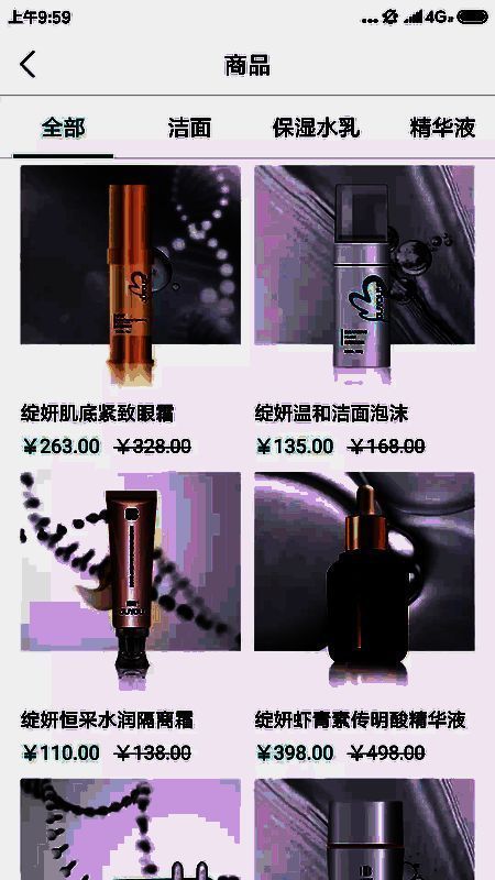 4、打开分类列表,全部品类的护肤品可以一一选购;