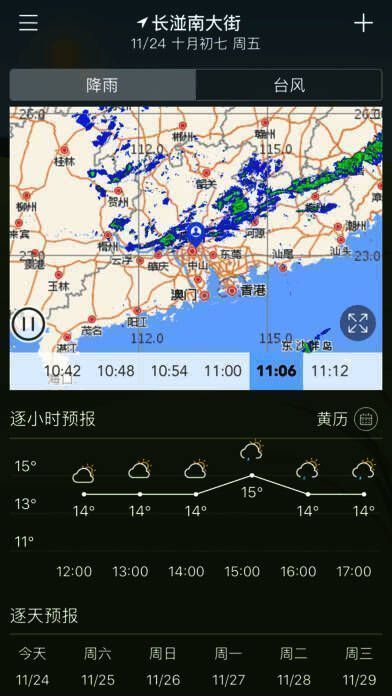 3、还提供一周天气预报、3小时预报、空气质量指数、PM 2.5、天气黄历等个性化服务;