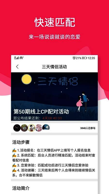 查看正在举办的假装情侣活动,感兴趣则可以直接报名;
