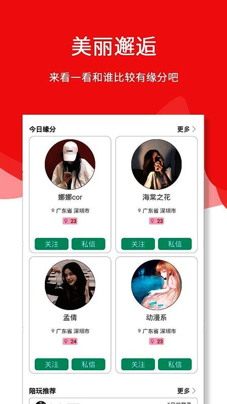 查看相遇的缘分,可以随机匹配聊天的人选;