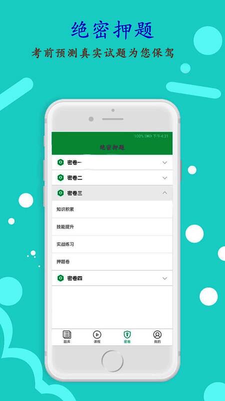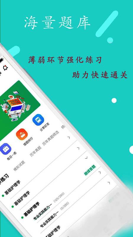 丰题库app拥有非常完善的题库资源,让更多的考生都可以在线轻松的复习试题,这样才能座靠考前复习准备;app提供的题库资源非常的丰富,包含了许多大型考试的题库资源,例如:各类医学职业考试、各类金融考试、各类建造师考试等等,可以满足许多考生的复习需求;你只需要在app中选择自己的考试类型以后,app就会快速的为用户提供对应的试题资源,然后考生就能开始练习试题了;app还会提供根据考生的试题练习情况,整理出合适考生的模拟试题,让考生的复习效果变得更优质;需要的考生快来下载丰题库安卓版使用吧!