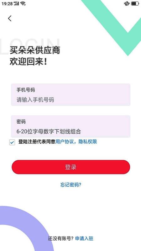 1、打开买朵朵供货商端软件进入到登录页面,登录账号后就能使用此应用;