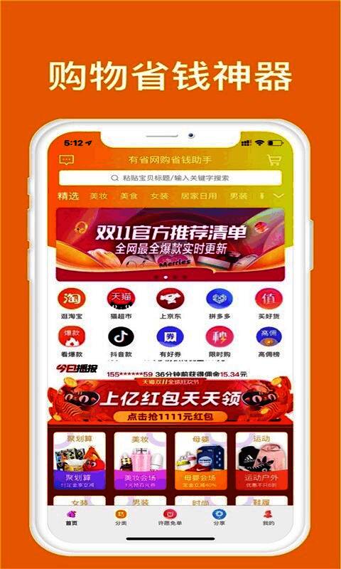 3、有省人气爆品应有尽有,购物前先领券,下单后还能获得返利。