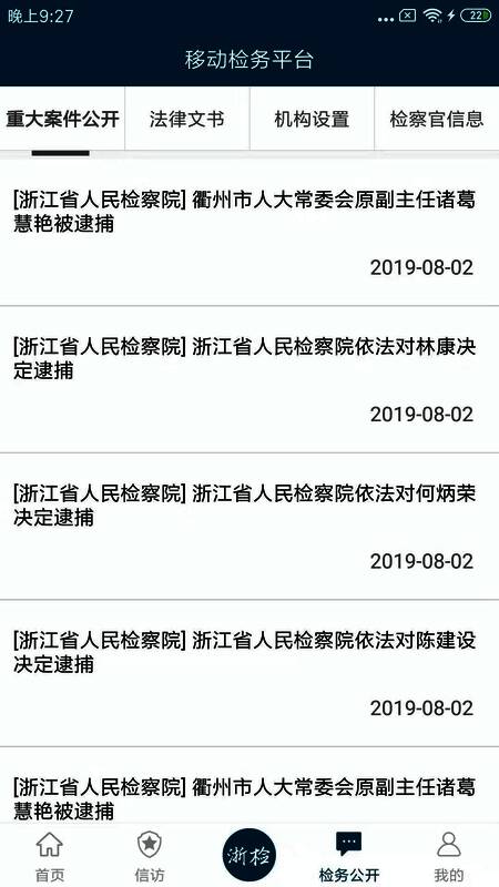 浙江检察app将平台的操作可以轻松的将本地的法律检查等各种的相关的信息都会提供,当地的民众只用在平台上分享个人的信息就可以知道相应的信息和享受提供的服务了,这里就能及时的知道本地最全面官方准确的检察院方面的所有信息和资讯了,每天都会有最新进展的内容会公布更新,用户在浏览里能够知道本地设计法律的所有的重要资讯的事情了。