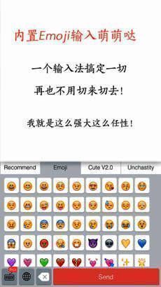 1、Emoji小表情迅速键入,完美的性能优化,转换流畅,不容易奔溃。