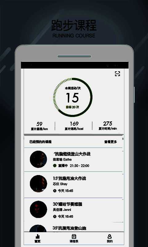 1、业内明星教练带来的无器械健身、跑步、瑜伽等直播课程。