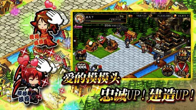 「织田信长」、「德川家康」、「真田幸村」等超过400位武将,化身为超Q可爱的美萌少女,陪玩家一起闯荡战国乱世!