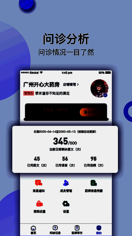 莲藕医生药店端独立开发的移动医疗综合服务平台,具有针对个体药房和连锁药房的完整知识产权。开放式咨询平台,远程审判中心,合理用药系统等多家在线医院的产品矩阵,为企业提供线上线下综合处方药合规销售服务连锁药店,解决方案为患者提供了丰富多样的移动医疗服务,例如在线咨询,疾病管理和用药指导。