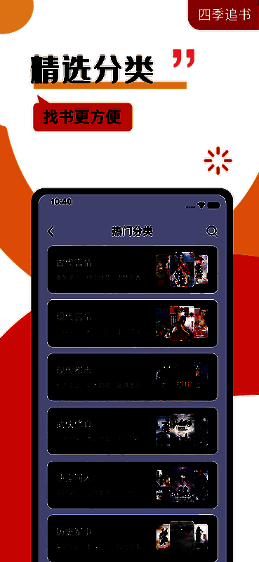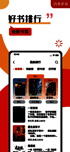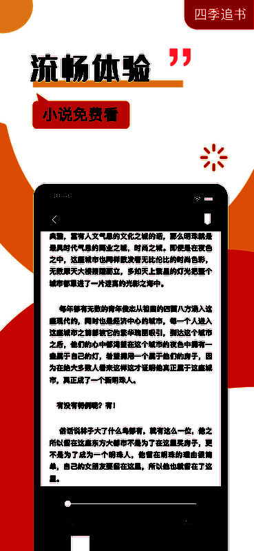 四季追书,小说免费看。《四季追书》是一款非常不错的小说阅读神器。在四季追书软件内,海量的小说资源,各种热门的小说排行榜,让你能够轻松的发现好书,从此告别书荒。连载的小说都是及时的更新,最新火爆的热门资源随时畅看。自定义的阅读模式,字体、大小、颜色等等,给你最舒适的阅读体验。