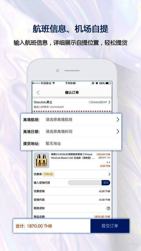 一键下单,机场自提,省去繁琐的购物流程;