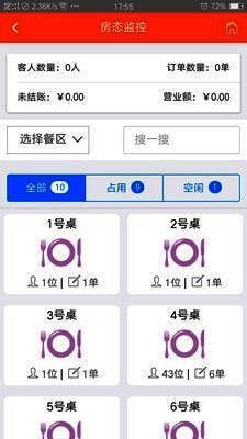 1、详细的餐区信息记录,时刻知晓正在营业和空闲的餐桌信息;
