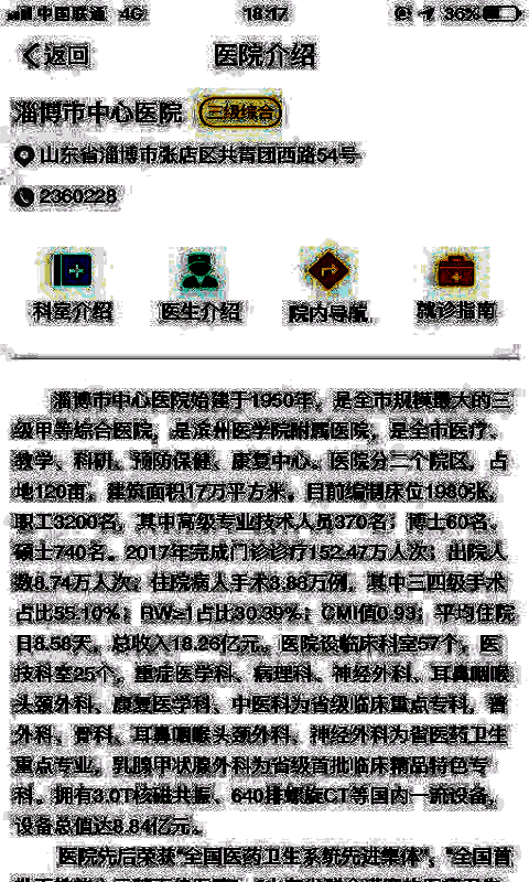通过在APP上提供院前、院中、院的服务,基本缓解排队2小时,与医生交流5分钟(即挂号排队时间长、看病等待时间长、缴费取药排队时间长、医生问诊时间短)的“三长一短”问题。是山东淄博中心医院唯一官方指定使用的APP。