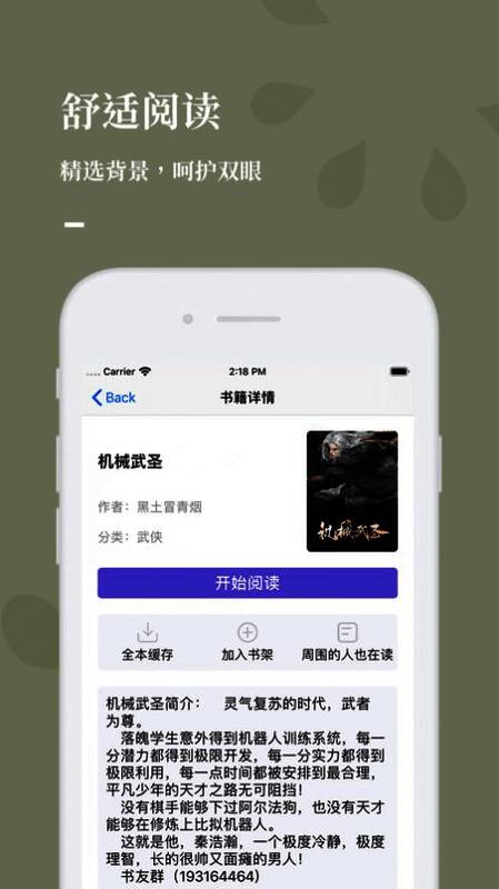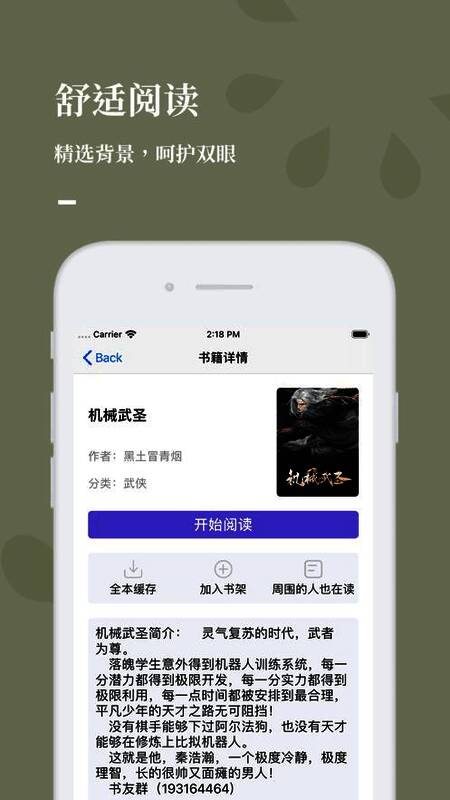 2、支持多种阅读背景、字体、翻页和屏幕亮度,你的每分阅读都是享受。
