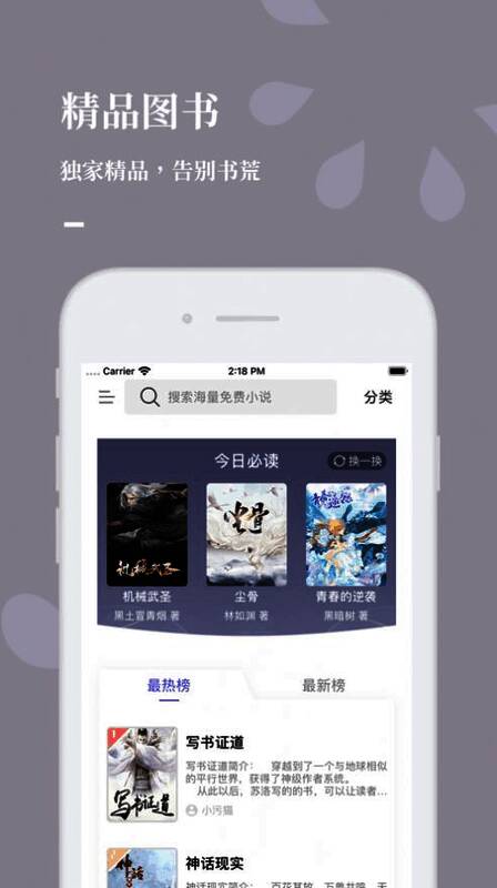 《呱呱看书》是目前最流行的手机小说阅读器平台,在这款软件之中可以来涵盖了大量的原创小说,让你随时随地都能看到自己想看的东西。这里所有的小说都是免费的,满足用户不同类型小说的需求。什么都可以错过,这款软件不可以!感兴趣的小伙伴们赶快来下载体验吧!