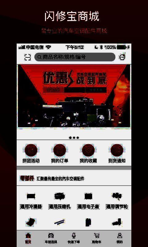 闪修宝APP是一款汽车及空调配件采购平台,专注于为用户提供各种价格实惠、质量优秀的配件商品,为用户打造一个优质的配件采购环境;平台提供冷凝器、压缩器、电子扇、调节轮、蒸发器等各种优质商品资源,不管你的汽车是宝马还是奔驰,不管你的空调是格力还是海尔,这些品牌的配件这里都有,轻轻松松就能满足你的采购需要,让你沉浸在配件的海洋中;平台提供语音搜索功能,不需要打字不需要拍照,只需要轻轻一点录入声音后即可搜索到目标商品,搜索变得简单又快捷;平台推出配套售后服务,用户在购买配件后还能享受到免费退换服务,遇到商品无故出现破损时可以直接将商品退换,全面保障用户的消费权益。