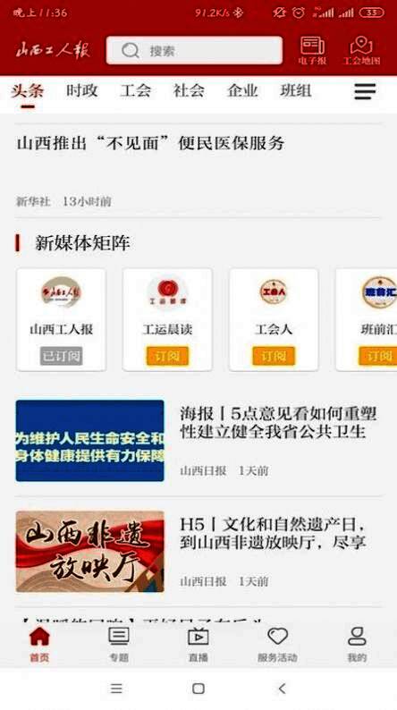 1、进入山西工人报软件的新闻中心,了解全方面的职工新闻内容;