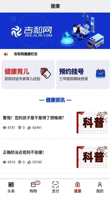 吉和网是目前吉林内最大的移动互联网综合信息服务和媒体传播平台,提供更富地域特征的生活信息,深入及时的报道长春城市发展与居民生活,内容全面涉及长春资讯、房产、家装、汽车、娱乐、影视、财经、体育、购物、休闲等城市生活的各个方面。长春资讯是吉和网旗下首个移动平台的资讯产品。
