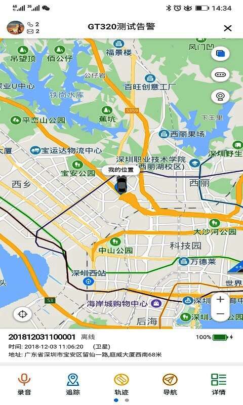 4、查看车辆位置,可以实时查看到汽车的位置和行驶轨迹;