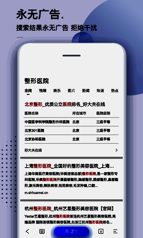 《简单搜索》是一款极小极简的智能浏览器app,全新版本特别升级了语音搜索功能,特别适用于最近的直播答题热潮,快速的搜索,让你轻松答对题目,冲击奖金,赚钱赚到手软,而且还有多方面的功能,内容丰富,等你来一一体验!