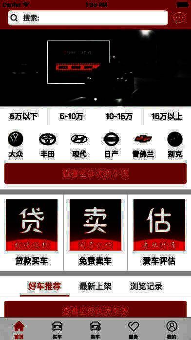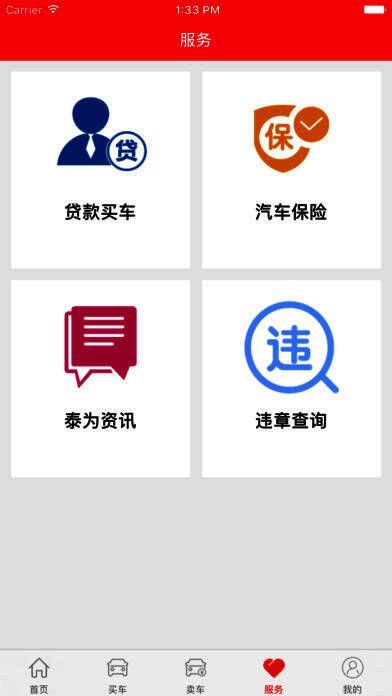 5、服务、包含贷款买车、汽车保险、泰为咨讯、违章查询四个模块。