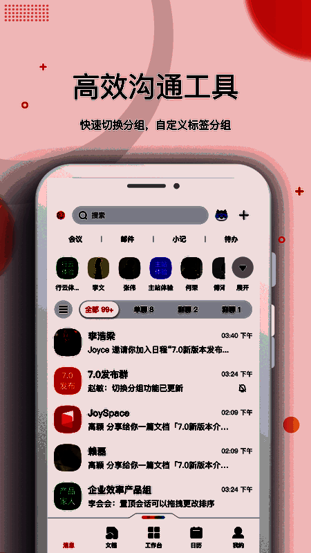 在功能性方面,京东MEAPP以“高效沟通”为核心,支持音视频会议、投票问卷、多人文档协同编辑等功能,帮助团队实现无缝协作。同时,该平台强调个性化服务体验,允许用户根据自身需求调整界面布局与使用习惯,真正实现“以人为本”的设计理念。