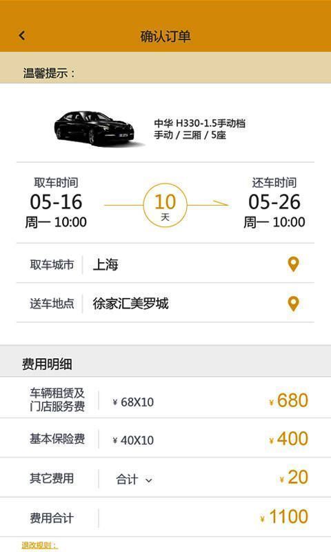 5、一键下单,并体验多元化的租车服务(短租自驾、长租、顺风车等);