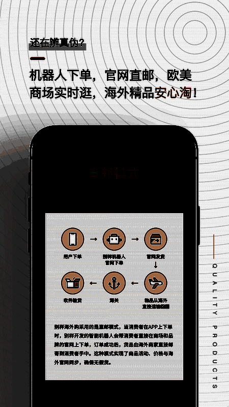 欧美海淘,省钱可靠。《别样海外购》是一款非常优质的海外直销的购物平台。在别样海外购软件内,汇聚了欧美当地的高端潮品、潮鞋、时尚、美妆、户外商家、同步上线官方,全球同价。在这里,让你能够享受到别样的购物优惠。海淘不加价,还有优惠。从此海淘无需费心,原装直邮到家。