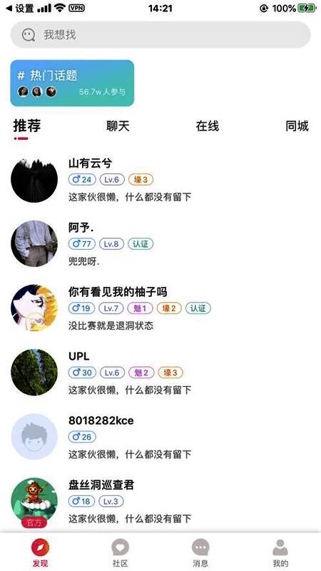星光盘趣是一款可以轻松的交友平台,在平台中需要用户来丰富自己的信息,在平台上的曝光率更高,平台上涵盖的用户来自世界各地,想要交到国际友人可以来这款平台,每天还有非常多的用户在线上活跃,加入进来就可以开始你的交友之旅,想要认识什么样的朋友都可以找到,不仅能够丰富你的生活,还可以拓展你的社交圈子。