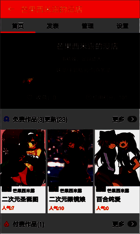2、用户专享独立个人空间,个性化的书架、钱包应用,及便捷的漫店后台管理入口。